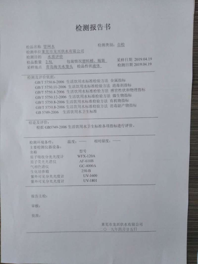 青島海關(guān)管網(wǎng)水龍頭水質(zhì)檢測(cè)報(bào)告