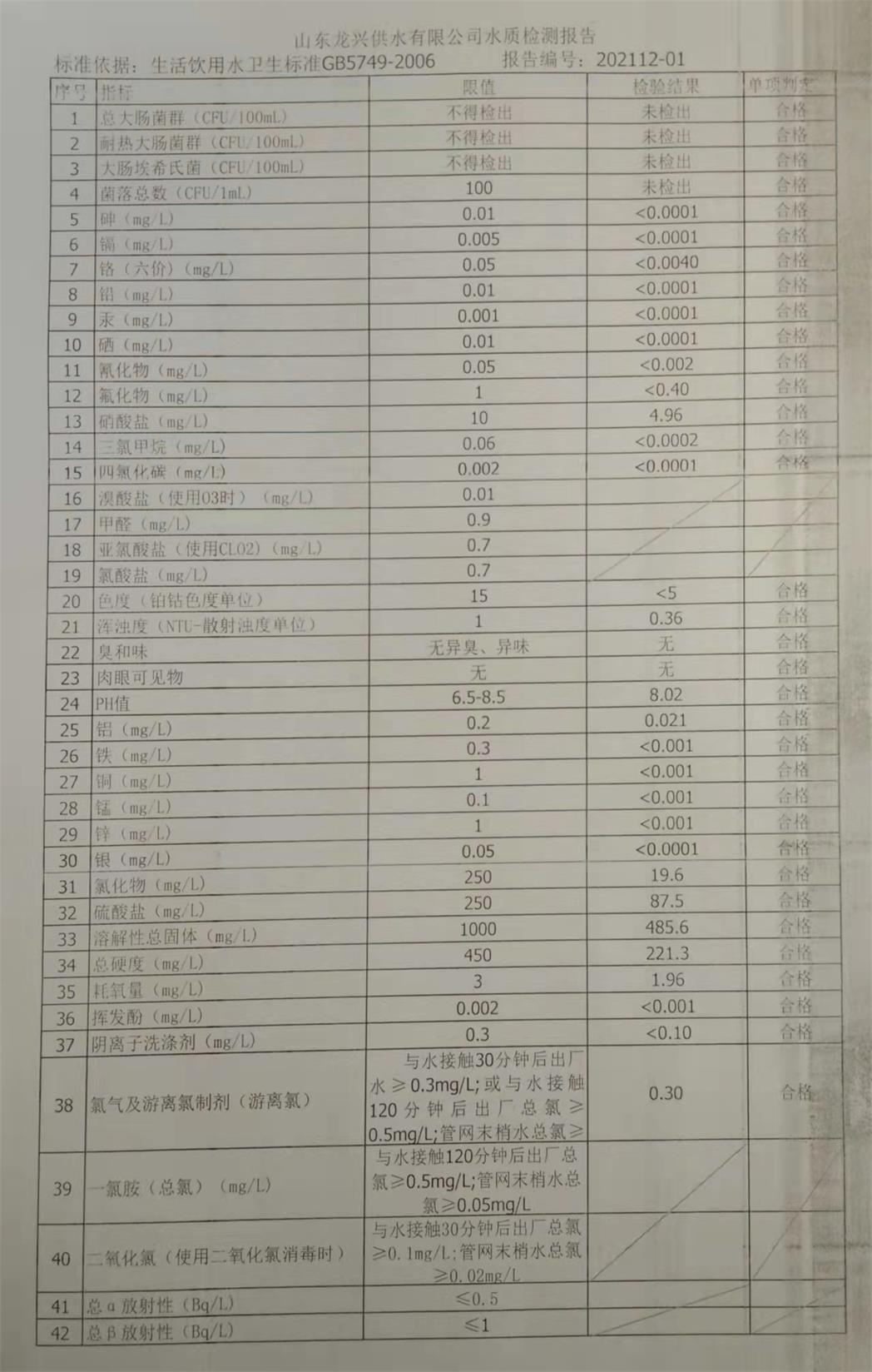 12月出廠水月檢報(bào)告