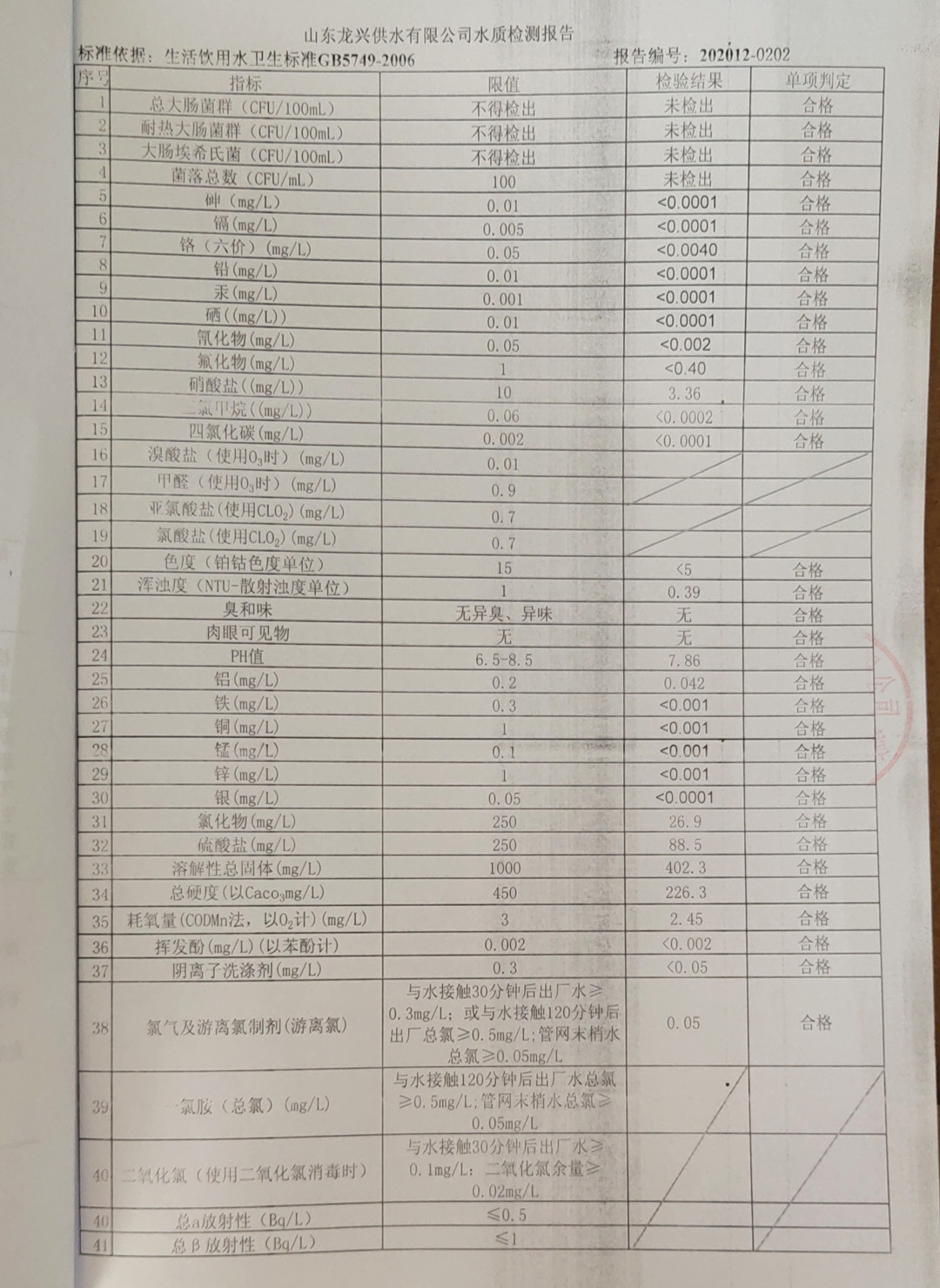 2020年12月管網(wǎng)水月檢報(bào)告